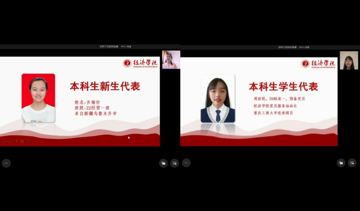 随后,本科学生代表和新生代表先后发言。20级财政学专业周欣悦同学结合自己的学习感悟,向学弟学妹们分享了三点经验:一是要提前做好学习规划,高度重视专业课程;二是注重知识的深度,提高专业素质;三是培养自己的兴趣爱好,大胆尝试新的领域,成为学才兼备的综合性高素质人才。22级经贸类一班齐婧竹同学则代表2022级新同学表示,作为太阳集团tyc122cc的新生,定会不忘初心,以充沛的生命力迎接未来的各种机遇与挑战,昂首阔步,无畏向前。