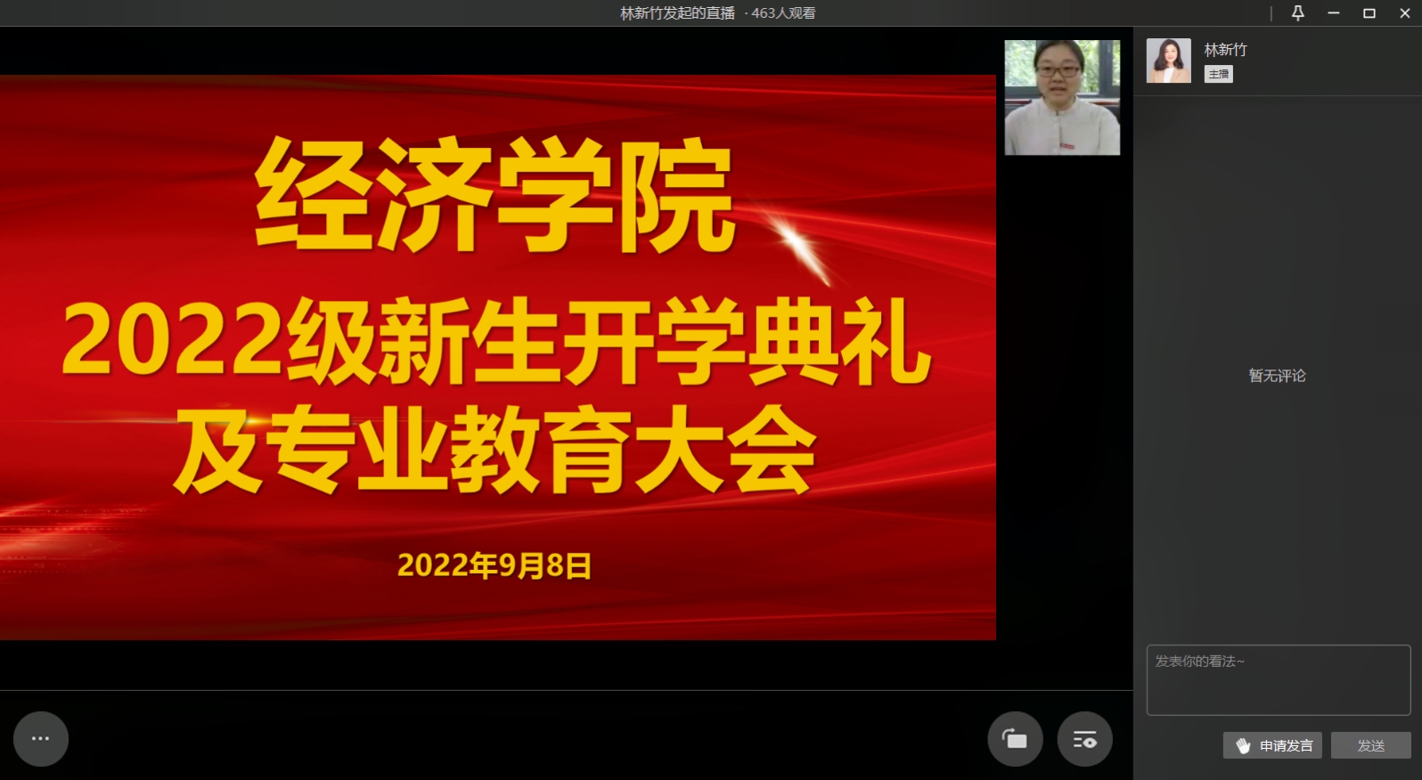 “敬道养正,励学修远”,9月8日上午,太阳集团tyc122cc2022级新生开学典礼及专业教育大会线上直播成功举行。太阳集团tyc122cc党委书记李自维教授,党委副书记、副院长宋瑛教授,副院长黄潇教授,副院长尹元福博士以及学院专家学者代表、教师代表,学院系主任,综合办公室、学团办公室教师代表,2022级487名本科生参与了本次典礼。典礼由学院学工办主任、分团委书记林新竹老师主持。