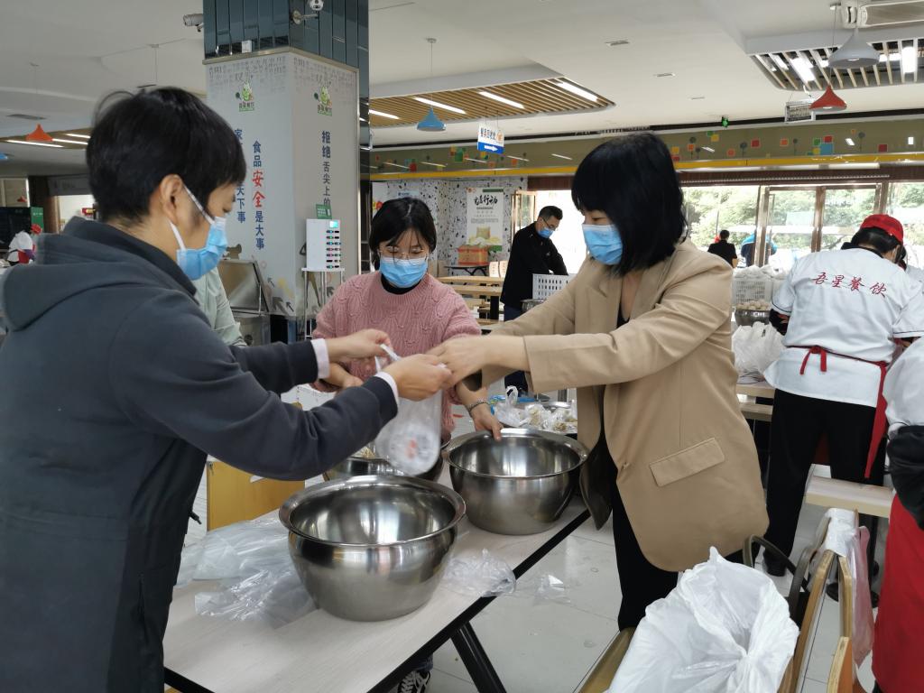 面对突如其来的疫情,同学们“足不出寝”,用餐需求尤为迫切。为满足大量的用餐送餐需求,学院领导和辅导员老师们亲自打包、配送盒饭,忙碌在配餐送餐、服务学生第一线,保障同学们的每一餐饭,甚至到凌晨依然在为同学们煮饭。一份份干净卫生、热气腾腾的盒饭,传达着学校浓浓的情和学院老师们满满的爱。