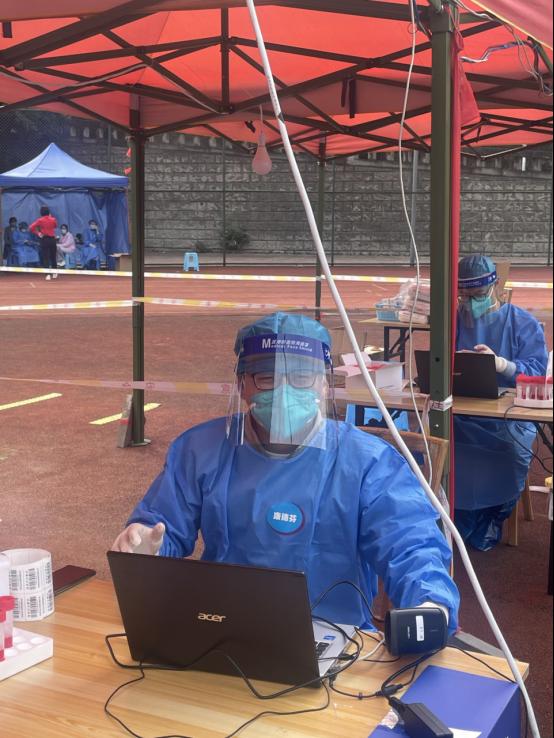 二是用情解忧,让我们与学院更紧。学院是守护抗“疫”前沿阵地的排头兵。疫情防控阻击战打响,学院党员干部挺身而出,英勇奋战,“逆行”冲往防疫最前线,起到先锋模范带头作用。通过此次抗“疫”,与学院辅导员奋战在一起,让我充分了解了他们的工作和所思所想,辅导员是高校中与学生接触最多的职位,具有教师和管理人员双重身份。疫情发生后,辅导员们理所当然的被安排在第一线。这期间,学生们遇到任何问题,第一个接到电话的一定是辅导员,大到学习工作、外出就医,小到洗衣、吃饭、理发,在封控的校园内,辅导员俨然成了“大家长”。在封控期间,我除了完成学校分配的工作外,有时也深入学生宿舍值班,经历着辅导员们的体验。有位辅导员问我,做这个工作刺激吗?他说,你完全不知道下一秒会发生什么状况,这也许就是这个工作的魅力吧。这些天,我们十多个人吃住在学院,紧紧的战斗在一起,没有人抱怨,没有人喊累,都在用心用情做好学生的服务工作,每一个人身上表现出的勇敢和坚毅都让我为之动容。正是有了这样一群人的努力奋战,学校的防疫工作才得以有效精准的推进。