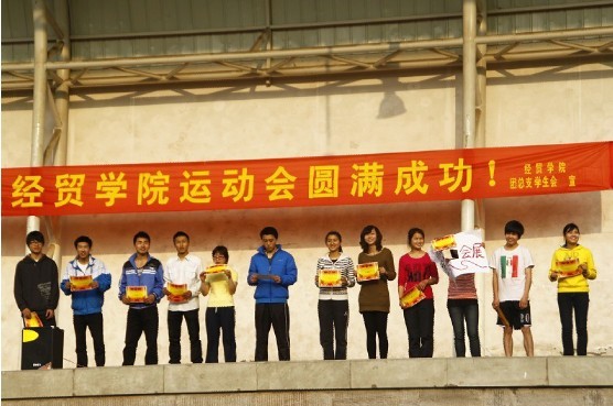 2011年3月12日,由经贸学院团委学生会主办、团委学生会体育部承办的第九届运动会在主校体育场隆重举行。学院09、10级各班参加了此次运动会,学院团委书记林新竹老师到操场为运动员们鼓舞打劲,她讲到运动会是展示自我,挑战自我的活动,也是最能增强和体现班级凝聚力的活动,希望同学们珍惜这个宝贵的机会,锻炼自己,挑战自己。