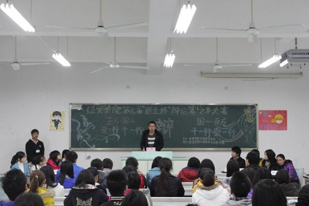风云际会,唇枪舌战。2010年12月12日下午3点,期待已久的经贸学院“新生杯”辩论赛两场半决赛在兰花湖校区20308和20309同时精彩上演。半决赛现场不仅荟萃了优秀的新生辩手们,更由院辩论队中优秀的辩手担任评委。