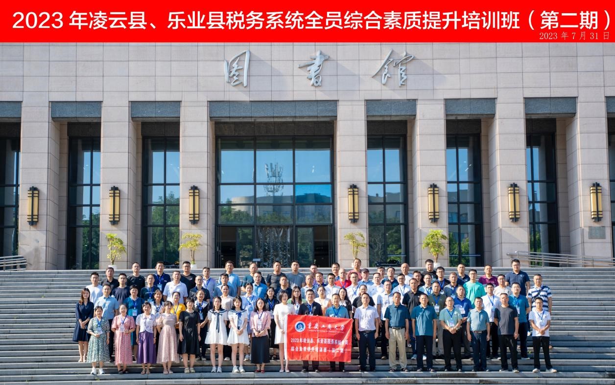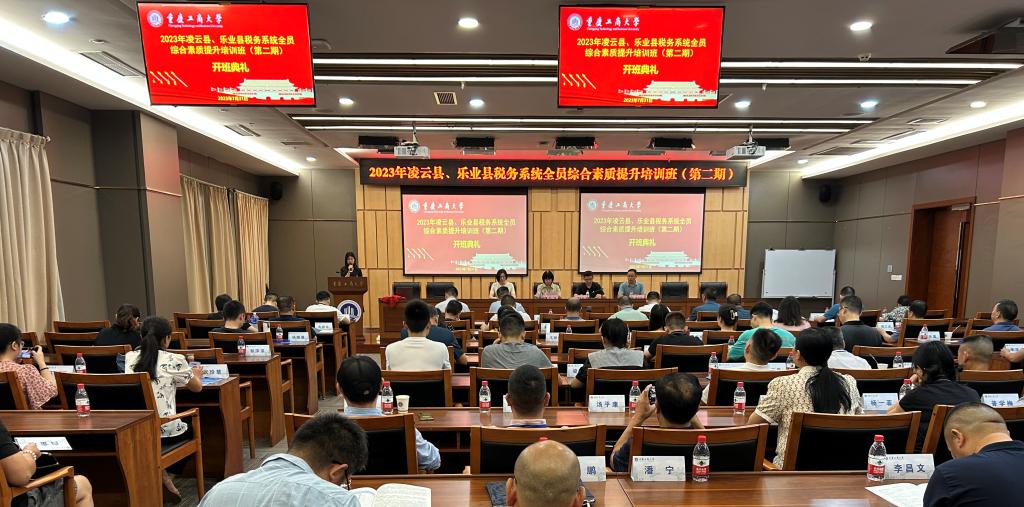 2023年7月31日上午,2023年凌云县、乐业县税务系统全员综合素质提升培训班(第二期)开班典礼在我校图书馆会议中心一会议室举行。凌云县税务系统39名及乐业县税务系统38名业务骨干参加此次培训。重庆工商大学太阳集团tyc122cc院长宋瑛、综合办公室主任严艳,凌云县税务局党委书记、局长潘国明、乐业县税务局党委委员、副局长吴世乐出席开班仪式。