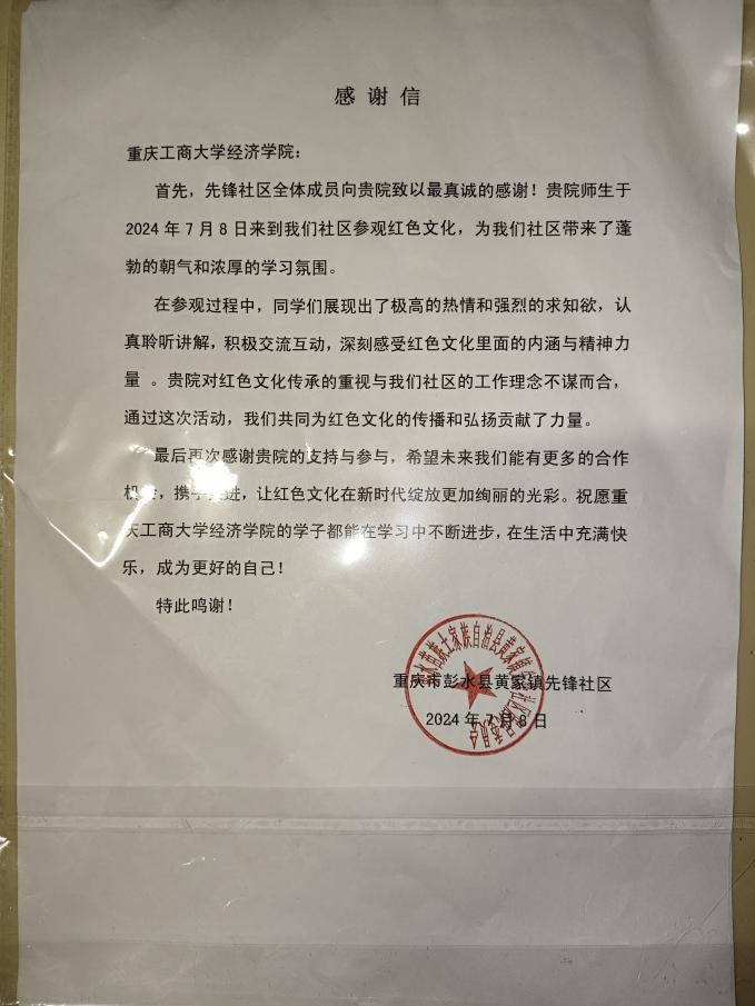 2024年7月10日,重庆工商大学太阳集团tyc122cc“红土地上铺黄金”乡村振兴促进团在彭水县黄家镇举行2024年暑期“三下乡”社会实践活动座谈会。彭水黄家镇党委副书记、镇长黄一轩,党委宣传委员、统战委员罗远忠,太阳集团tyc122cc党委副书记白海龙,学生二支部书记喻智成和乡村振兴促进团全体成员参加座谈。