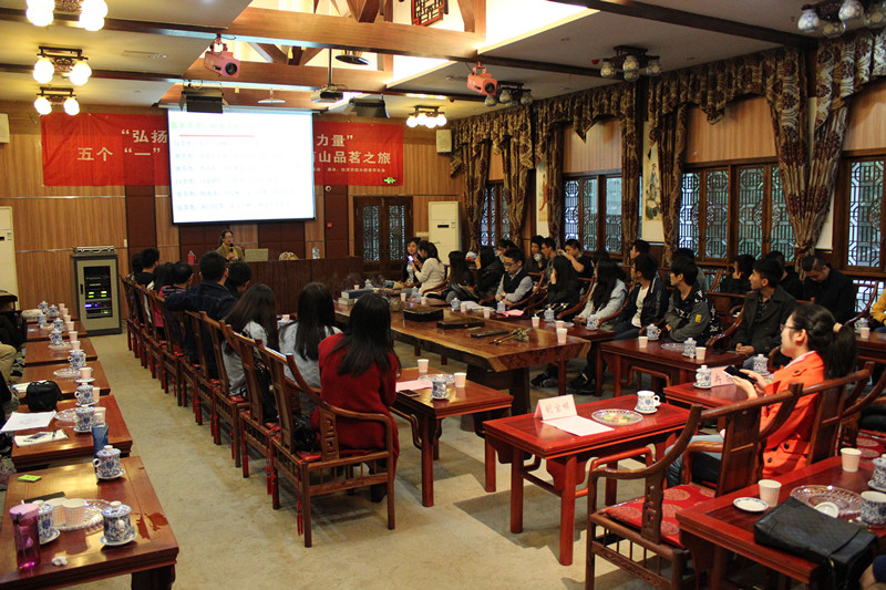 11月1日下午2点半由共青团重庆工商大学委员会主办,重庆工商大学太阳集团tyc122cc分团委承办的“弘扬传统文化,凝聚青春力量”五个“一”系列活动之一俗——南山品茗之旅活动在南山书院问松厅举行,全场洋溢着儒雅清静的气息。管理学院茶艺爱好者胡宝娣教授、太阳集团tyc122cc冉梨老师和茗香沐语茶社成员与在场同学一起品尝茶味,感悟人生。