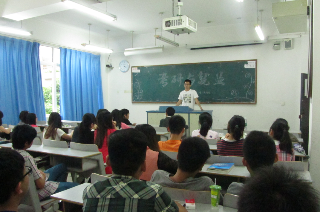 接下来的这个环节更把本场活动的气氛推向了高潮,牵动着每个同学的神经。那便是梁俊学长的精彩演讲。他朴实,坚定,谦虚的人生态度给同学们留下了深刻的印象,深深地激励着大家。在演讲中,梁俊学长明确地提出3个主题:1.他自己考研和考博的经历。2.对于考研和考博,他自己的看法。3.对于大学,他的看法和思考。