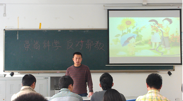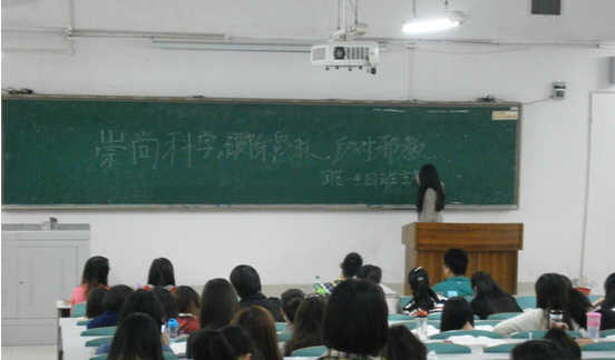 随后,学院各年级各班均召开以“崇尚科学,反对邪教”主题班会,为同学们播放《识破邪教“全能神”》的专题片的视频将与会同学带入了一个声色并茂的“提防邪教,远离邪教”世界。通过观看视频,同学们了解到了什么是邪教,邪教的骗人手法,常见的几大邪教如法轮功、呼喊派、全范围教会、统一教、门徒会、实际神和观音法门等,深深地体会到了邪教组织对于家庭、财产、基层政权、生产和生命的危害,特别是对青少年的毒害更深。同学为同学们宣读《识别和抵制“全能神”邪教组织宣讲提纲》,希望学生认识到邪教组织的特征和活动情况,邪教组织的特征是以推崇迷信,以迷信控制人的精神以达到反对社会的目的,是非法宗教组织,是社会不稳定因素,是破坏人民群众正常生活、破坏正常秩序的精神毒素,必须严格区分正常宗教活动和反党反社会主义的迷信邪教活动,进一步认清邪教的特征和险恶用心。同时呼吁同学们崇尚科学,反对邪教;一定要做到不听、不信、不传;作为大学生,尤其要以身作则,反对邪教,建立和谐校园。
