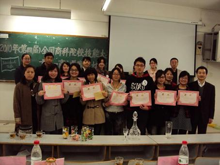 比赛伊始,宋书记介绍:我院是自去年10月就开始的筹备参与第四届全国商科院校技能大赛国际贸易专业竞赛(学生组),并于2010年12月推荐40名2008级国贸经济与贸易专业的学生参与此次竞赛的一轮知识赛笔试,其中30名学生通过笔试获得参与技能赛的资格,今天的选拔赛就是为了选拔优秀的团队参加于2011年5月20日-22日在北京进行的总决赛。由于是第一次参加此类比赛,宋书记鼓励同学们“重在参与、收获意外”,随后宋书记宣读了在第四届全国商科院校技能大赛国际贸易专业竞赛(学生组)知识赛获得合格的学生名单并由在座的嘉宾和评委老师对他们进行了颁奖。