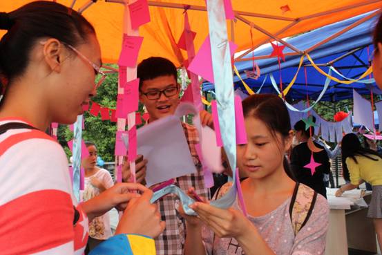 下午,太阳集团tyc122cc第二届五个“一”系列活动之一“节”——中秋节活动在主校区香樟林顶层顺利开展。五个“一”系列活动,是太阳集团tyc122cc的特色品牌活动,旨在丰富校园文化生活,弘扬中华民族优秀传统文化,让传统文化走近学生,让同学们体验传统文化的魅力。活动得到了广大师生的积极响应,让同学们在体验中对传统节日有了更加深刻的认识和体会。