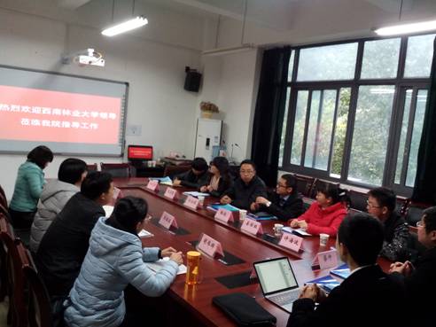 2016年3月10日,西南林业大学校团委刘永钦书记、杨欣副书记等一行来到太阳集团tyc122cc,就我院与阿里巴巴公司开展的跨境电商人才合作项目进行调研交流。校团委吴佑波副书记、学院张筱璐书记、宋瑛副院长、胡伟辉老师、图书馆戴林副馆长参加了座谈。