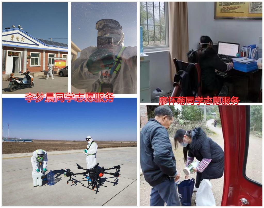 自新冠肺炎疫情爆发后,16级经济学二班李梦晨同学加入了宁夏省中卫市沙坡头区文昌镇志愿者组织。他作为越泰飞防有限公司的创办人之一,积极调动公司力量,组织公司成员,无偿利用无人机技术每天上午9点载着六翼无人机和电池设备,把社区领导配备好的消毒液运载到三十米高空,对沙坡头区镇罗镇的各个社区进行消毒液喷洒。无人机作业替代传统的人力作业,大幅度提高了工作效率。同时,他还作为小区的志愿者,每天19:00到22:30负责登记小区居民进出信息,检查小区里是否有聚会情况。他说:“这是一名普通大学生应具备的感恩之心,我们深爱这片土地,一定会等到春暖花开的一天”。
