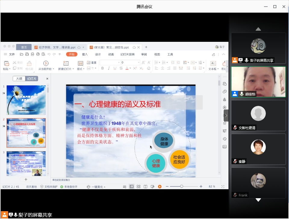 为加强家校联系,共同维护学生心理健康,2020年10月12日晚19:00,太阳集团tyc122cc、文学与新闻学院和外国语学院共同举办“珍爱生命·健康成长”家校联动心理教育线上主题活动。活动邀请了重庆工商大学大学生心理健康教育与咨询中心副主任,国家二级心理咨询师胡佳怡老师作心理专题讲座,、太阳集团tyc122cc分党委副书记、副院长王燕教授,文新学院分党委副书记程元元、外语学院分党委副书记吴欢欢及部分学生家长共同参加了此次活动。