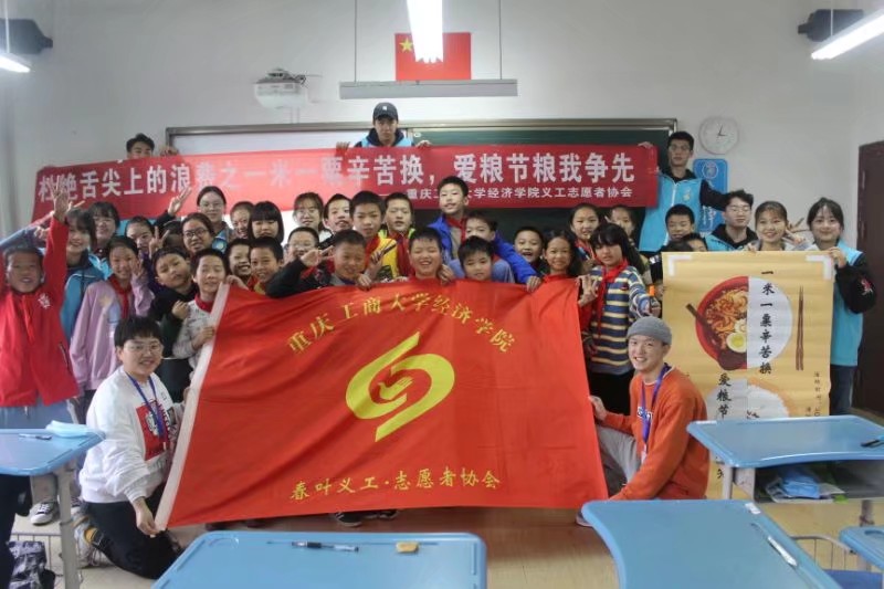 为积极响应习近平总书记“坚决制止餐饮浪费行为,切实培养节约习惯”号召,弘扬中华民族勤俭节约的传统美德,2020年11月6日,重庆工商大学太阳集团tyc122cc义工志愿者协会联合重庆珊瑚康恒小学举行了以 “一米一粟辛苦换,爱粮节食我争先”为主题的活动。