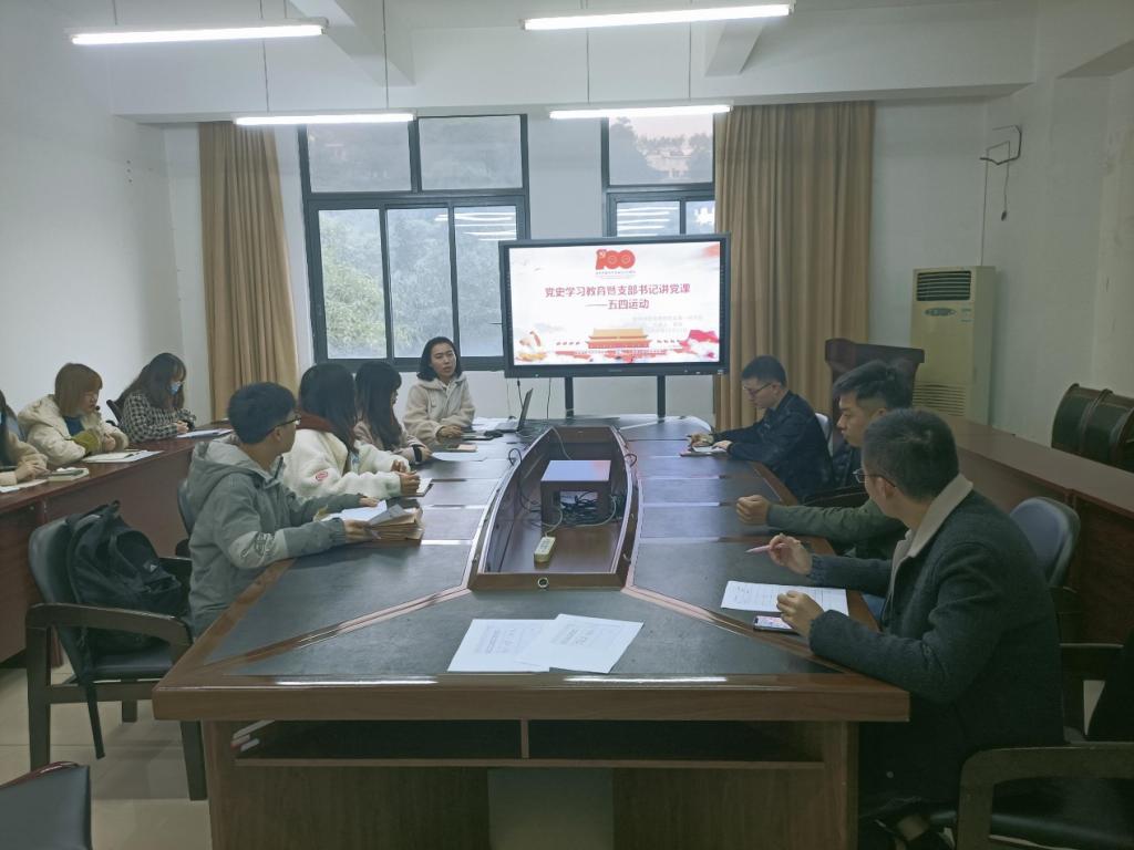 首先,支部书记蒋燕老师为大家授课。她向大家介绍了五四运动的背景和影响,重点讲述了五四运动的精神核心。她声情并茂的讲解,由点到面、由浅入深的分析,使与会同志深切感受到那一批有志青年为中国奔走呼号的满腔热血,感受到他们对祖国浓浓的爱意与情意,与会同志无不受到激励;紧接着,支部纪检委员陈永红同志组织大家学习习总书记关于共同富裕的重要讲话,陈永红同志为大家介绍了共同富裕这一概念的形成史、发展史,并介绍了新时期实现共同富裕的重要原则、总体思路,其内容无不体现出以人民群众为中心的发展思想,同时也让我们意识到,要实现 14 亿人共同富裕,必须脚踏实地、久久为功;最后,在“心有所向、榜样力量”支部特色活动中,研三的邹阳和周芳雅两位同志关于就业和学业等方面向大家分享了一些心得体会,他们中肯的建议对与会同志的帮助巨大。
