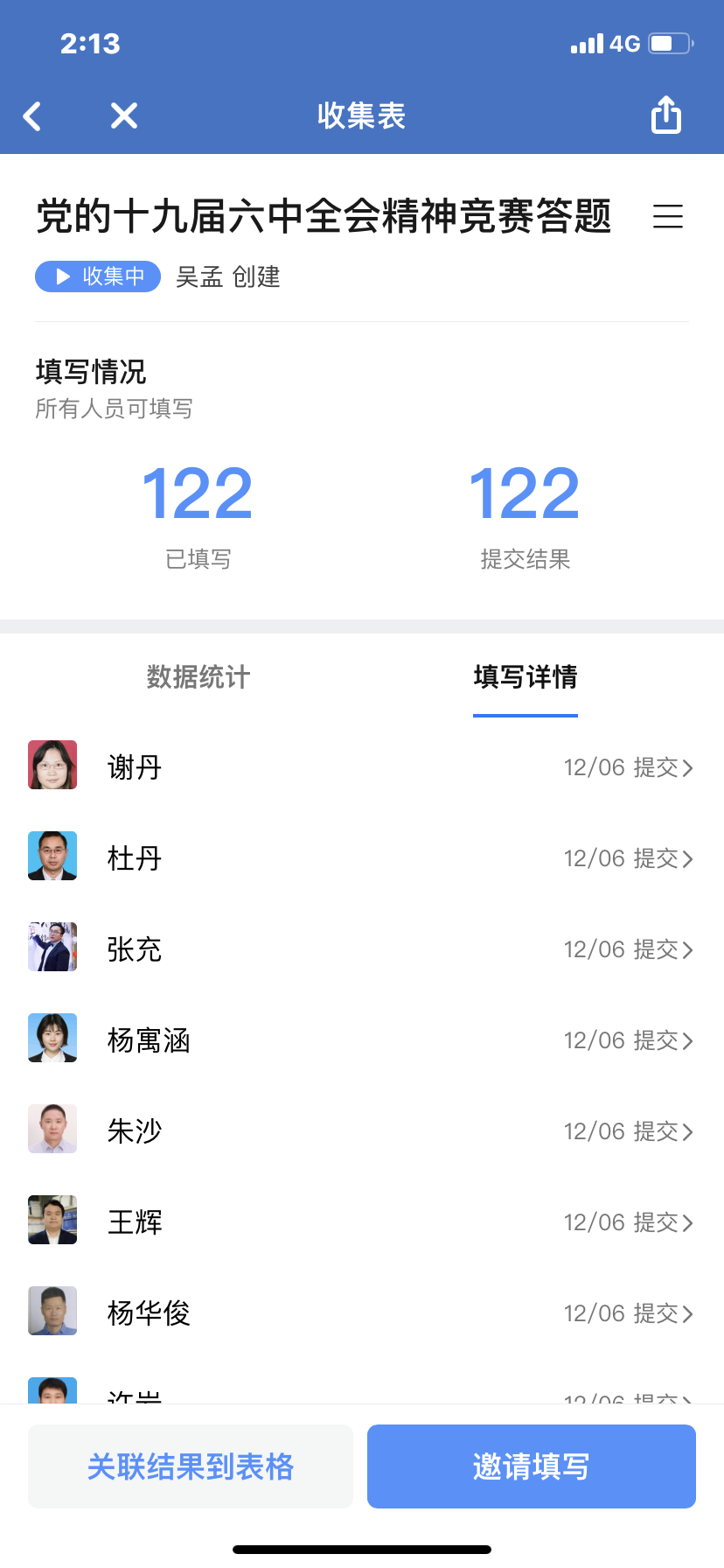 12月2日至12月13日,太阳集团tyc122cc工会在全院教职工中开展了在线学习党的十九届六中全会精神知识竞答活动。本次活动以学习十九届六中全会精神为主题,设计了30个在线学习问答题,以知识竞答的方式在学院企业微信群发布,全院教职工共有122人积极参与了在线竞答,最后根据老师们答题的时间先后与正确率,评选出了本次活动的一二三等奖。通过这次在线竞答活动,在全体教职工中掀起了关注和学习十九届六中全会精神的高潮,老师们通过学习,对中国共产党百年奋斗的重大成就和历史经验有了更加全面和深刻的认识,更加明确了把十九届六中全会精神贯彻落实到教学科研工作中的主题内容和方向。