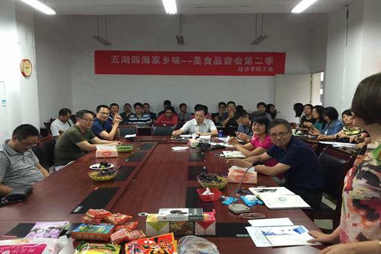 2015年9月11日下午,太阳集团tyc122cc工会利用开学第一次全院教师会议的机会,组织了丰富多彩的“五湖四海家乡味”第二季活动,老师们带来了各自家乡以及假期旅游收获的特色美味食品让大家共同分享,有云南、贵州、陕西、陕西、江苏等地的特色食品,还有来自泰国、埃及、土耳其、美国等国的异域美食,老师们在欢声笑语中分享体验了五湖四海的美味。这是太阳集团tyc122cc工会第二次组织“五湖四海家乡味”活动,通过这项活动,调动了老师们对自己家乡以及假期旅游度假目的地特色食品的关注,开学第一天为同事们分享,创造出一种欢乐祥和的氛围,增强了学院教职工小家的凝聚力。学院工会表示,作为教职工之家建设的内容之一,这项活动今后还要继续搞下去。