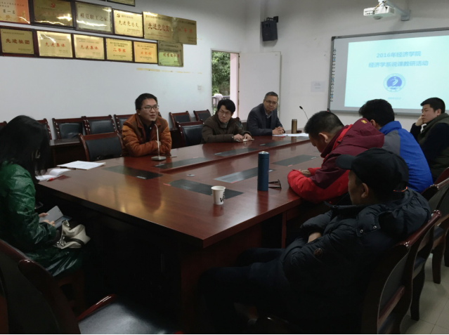 首先,宋瑛副院长通报了学校2017年教学评估工作的注意事项,并总结了我院人才培养模式的改革情况、课程建设情况和教改项目情况等。会议第二项内容是新进教师说课研讨活动,周磊、张翠菊、唐丽淼等三位新进教师先后进行了说课活动,并就部分教学方面的问题和困惑与参会老师进行了交流和讨论,陈新力院长就日常教学中应该注意的问题也提出了几点建议和看法。随后,系主任黄潇、副主任易淼、熊维勤教授分别汇报了西方经济学、政治经济学和计量经济学课程建设情况。最后,系主任黄潇向与会老师总结和通报了经济学系“三特”暑期调研活动所取得的成果。