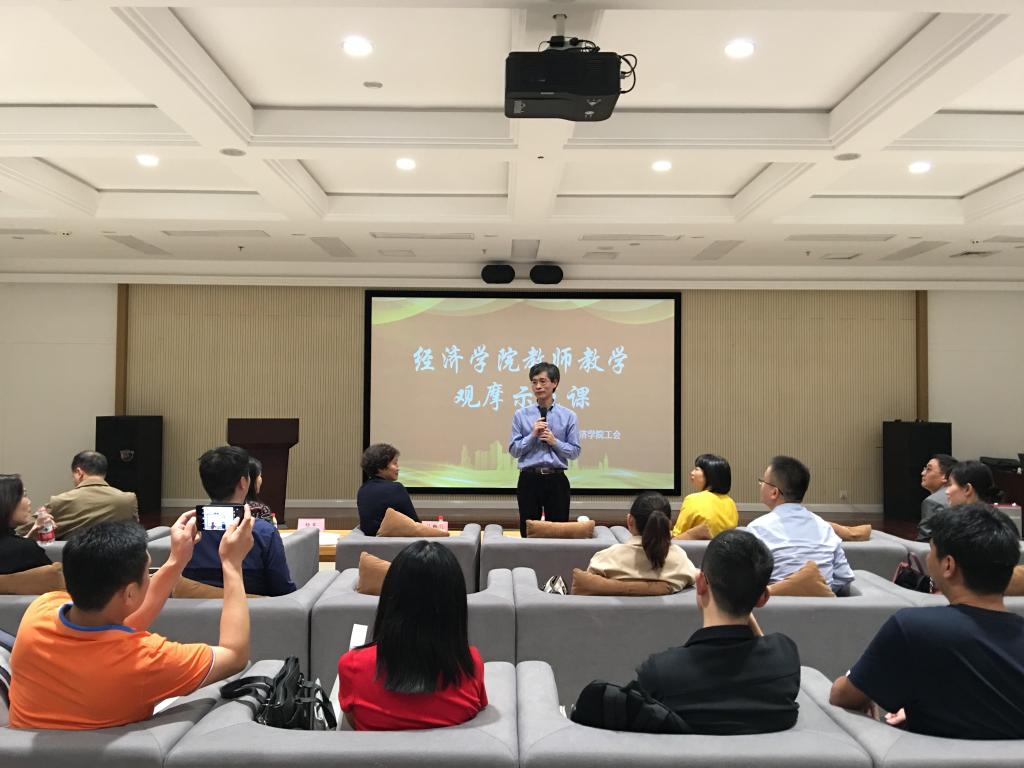 第一阶段的讲课比赛包括两个环节,评审课程教学大纲、课程设计等书面材料和现场讲课比赛。在讲课比赛中,9名青年教师分别进行了精彩的演讲,最后评选出了一等奖2名、二等奖2名、三等奖2名,贸经系的林黎、孙畅老师以其优异的表现得到6名评委的高度评价,并列获得一等奖。比赛结束后,学校评估办杜主任对比赛做了精彩的点评,她认为太阳集团tyc122cc组织的青年教师讲课比赛非常有意义,是学校提高本科教学水平、提高人才培养质量的根本任务和要求在学院的具体落实。杜主任从国家、学校对本科教学评估的角度,提出了学院和每一位老师都应该进一步思考和明确的问题,教学的目标究竟是以传授知识为主还是以传授学习方法、培养学生学习能力为主。杜主任还对青年教师提出了中肯的教学建议:一是课堂教学中一定要考虑和坚持“以学生为中心”的教学理念;二是要把信息技术与课程教学内容深度融合;三是年轻博士老师要把科研成果融入到课堂教学中。