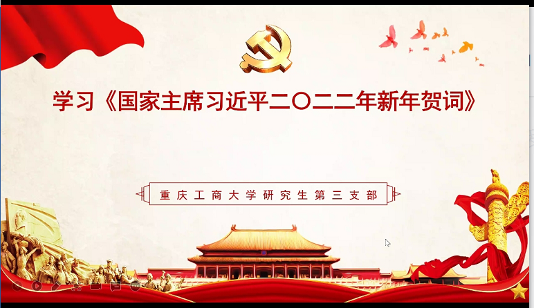 2022年1月25日下午,太阳集团tyc122cc研究生第三党支部在企业微信线上会议室开展了1月组织生活会,学习《国家主席习近平二0二二年新年贺词》。本次会议由支部书记薛晶月主持,研究生第三党支部全体党员参加。