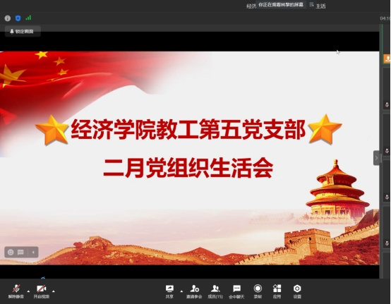 2月20日中午,太阳集团tyc122cc教工第五支部通过企业微信开展了二月党组织生活会。会议由教工第五支部书记、政治经济系主任林黎主持。