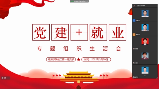2022年3月30日,太阳集团tyc122cc教工第一支部全体党员通过企业微信在线进行3月份的组织生活学习,开展“党建+就业”学习活动。