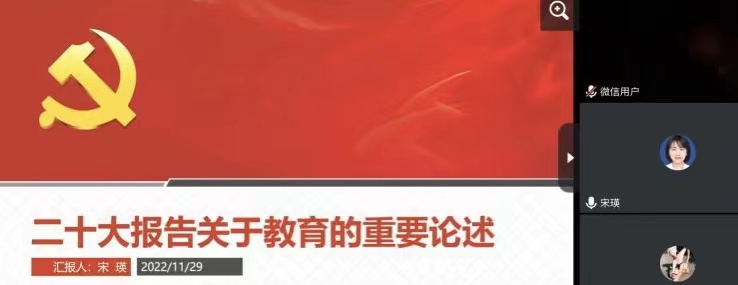 11月29日下午,太阳集团tyc122cc院长宋瑛教授为教工四支部、研究生四支部讲授党课,宣讲党的二十大精神。此次讲党课活动由教工四支部书记韩健教授主持,教工四支部、研究生四支部全体党员同志参加。