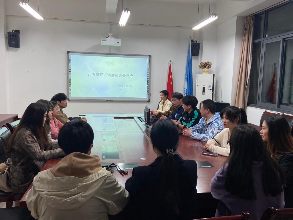 为帮助2023届本科毕业班学弟学妹更好地完成考研复试、调剂准备工作,3月16日晚上19:00,研究生四支部在田家炳404会议室举办了考研复试、调剂经验分享活动,为满足毕业班考研学子的需要,本次活动还开通了线上交流渠道。本次活动邀请了我院2021级成功上岸的沈泉江、张松霖、杨思意、赵婷婷、胡可妮、李茜、莫紫琪等七位同志进行考研复试及调剂经验分享,学院2023届部分考研学生参加。