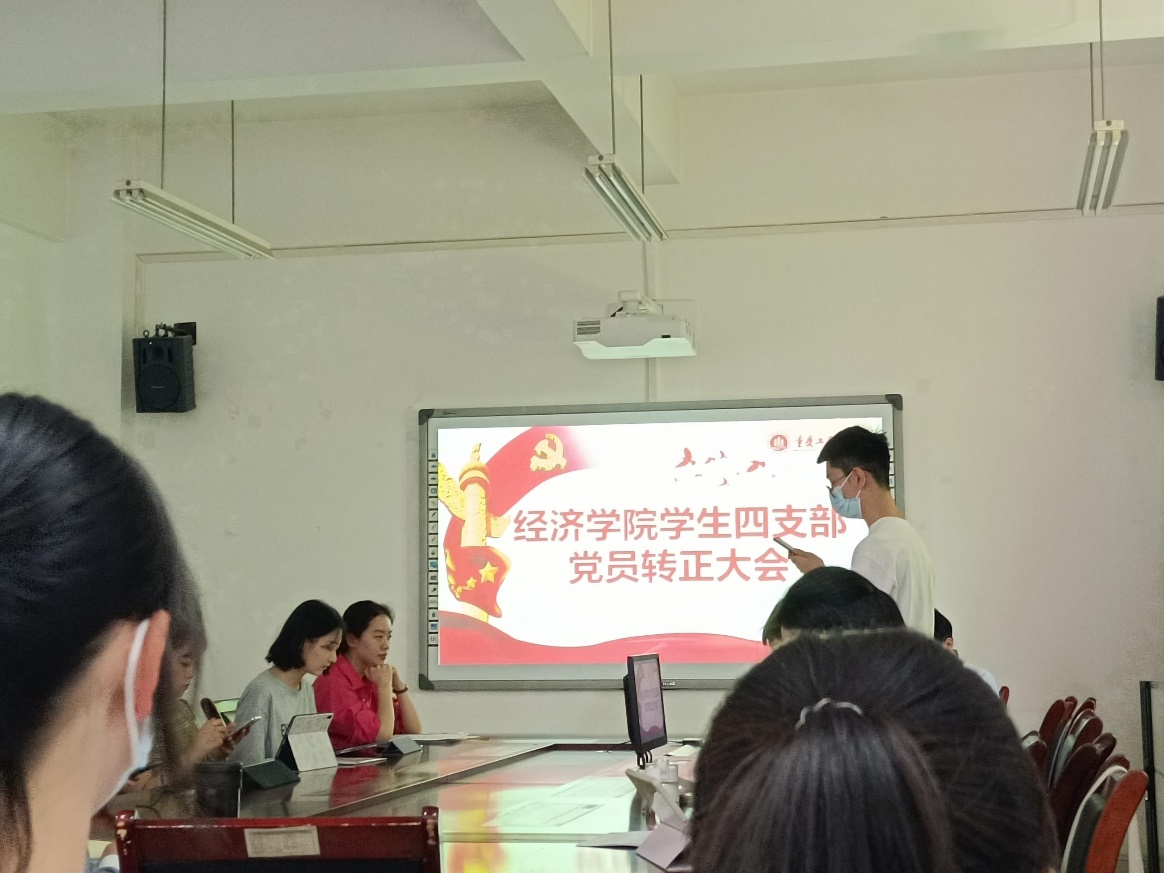 2023年5月29日星期五下午14:00,太阳集团tyc122cc学生第四党支部在田家炳404会议室召开了转正大会,大会主要讨论了是否同意陈建、方思影、郭瑞琦、王琼敏4名同志由预备党员转为中共正式党员,参与本次会议的有太阳集团tyc122cc第四党支部书记文理老师以及太阳集团tyc122cc四支部全体学生党员。