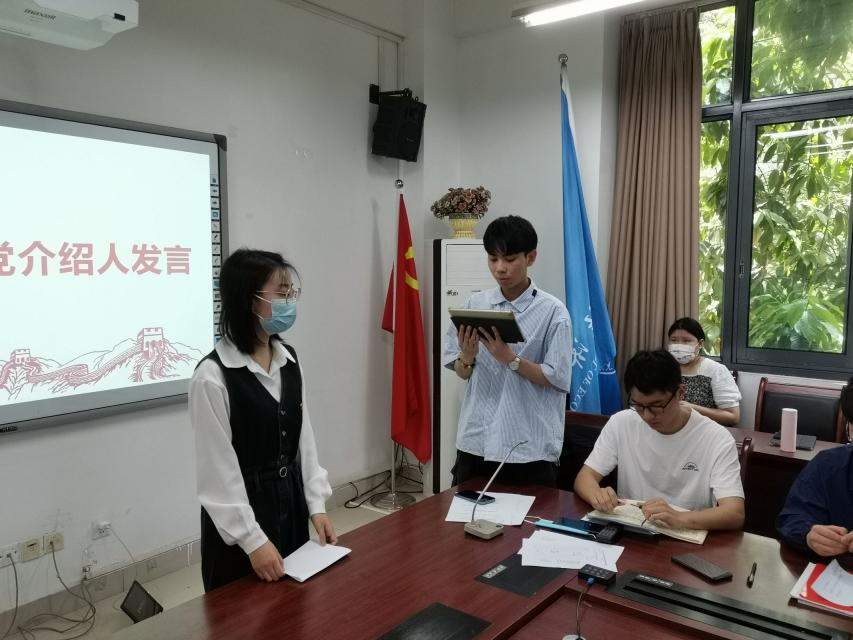 预备党员发言结束后,每位预备党员的入党介绍人向各位同志介绍了该对象的基本情况和具体表现,并表示推荐其加入中国共产党。随后,四支部党员同志们先后对每位预备党员发表了自己的意见,肯定了他们作为预备党员为四支部做出的贡献,见证了他们在四支部的成长。最后,由支部书记文理老师向预备党员进行了提问,提问内容不仅围绕着向党靠近的心路历程及生活感悟,还包括思想态度、对党的认识等问题。