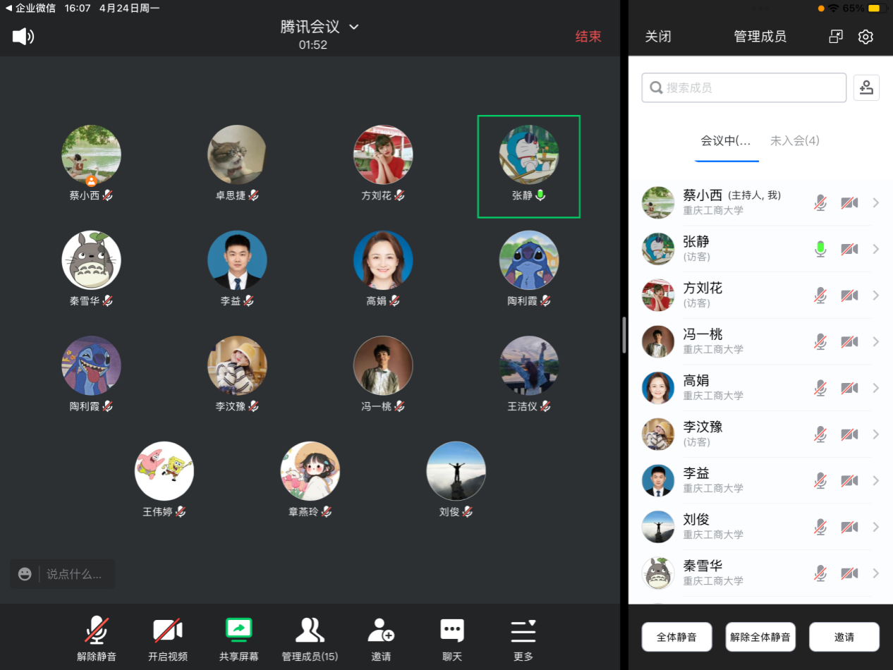 2023年4月24日,太阳集团tyc122cc党委研究生第二党支部于腾讯会议开展了4月组织生活。本次会议由高娟同志主持,研究生第二支部全体党员参加。