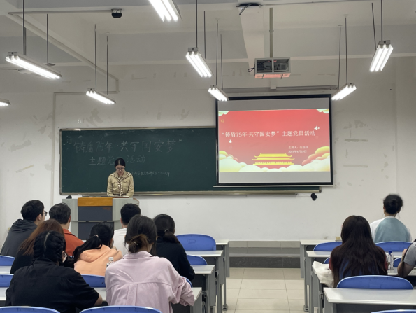 首先,由蒋燕同志致辞。今年是中华人民共和国成立75周年,也是习近平总书记创造性提出总体国家安全观十周年之际。为庆祝这一具有历史性的时刻,开展本次特色活动。以此引导成渝地区双城经济圈建设研究院全体青年党员铭记新中国诞生与成长的艰辛历程,激发研究院广大青年党员不忘初心,奋力拼搏,掌握科学文化知识,在强国建设、民族复兴伟业中勇当先锋队、突击队,让党旗更飘扬,让国旗更鲜亮,共同迎接中华人民共和国75周年华诞的到来。