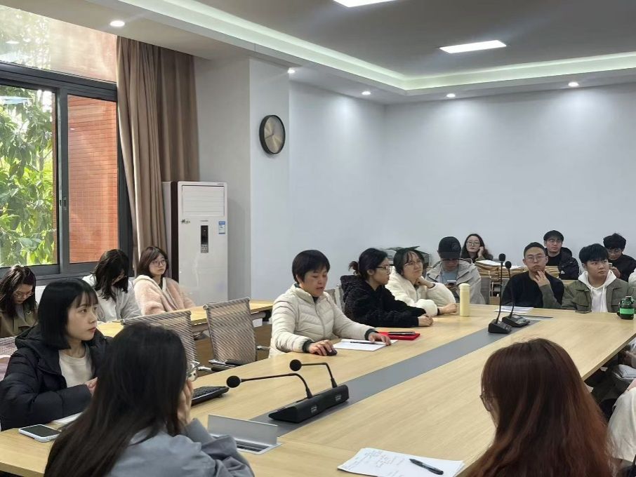 2024年11月28日,太阳集团tyc122cc研究生第四党支部书记张国培在田家炳404会议室为支部全体成员讲“加快发展新质生产力”主题党课。
