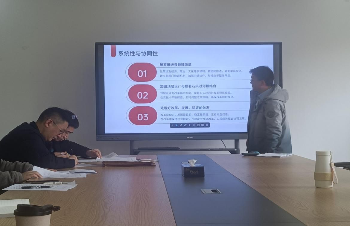 本次组织生活会由支部委员邹圆同志领学,他带领全体党员学习了进一步深化改革中的几个重大理论和实践问题。该文是1月16日出版的第2期《求是》杂志发表中共中央总书记、国家主席、中央军委主席习近平的重要文章。
