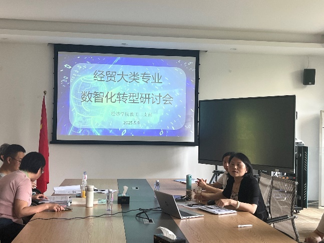 会上,支部党员、国贸系主任蒋兴红同志做了主题发言,从形势政策、行业背景、教育背景等方面分析了经贸大类专业数智化转型的重要性及紧迫性,并介绍了国内高校经贸类专业数智化转型的探索与实践,如对外经贸大学的“数字贸易实验班”、南开大学的“数字经济与贸易精英人才特色班”、山东财经大学的“全球视野+国际素养”数智经贸人才培养计划、浙江工业大学的“数字贸易”微专业等。