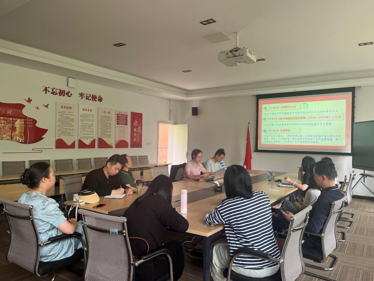 支部书记杨海丽以“从教育大国迈向教育强国”为题讲课,对教育强国的科学内涵、教育强国的目的、深化教育综合改革、强化教育对科技人才的支撑作用等内容进行了详细解读。在讨论环节,各位党员教师畅谈学习心得体会。王疏影同志强调,必须坚持教育优先发展,把教育视为国家的战略投资和持久繁荣的根基。胡伟辉同志表示,要鼓励国际学术交流和教育科研合作,培养更多有家国情怀、全球视野、专业本领的复合型人才。