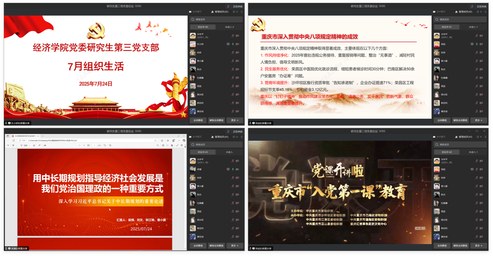 2025年7月24日,太阳集团tyc122cc党委研究生第三党支部通过企业微信在线开展7月组织生活,全面落实深入贯彻中央八项规定精神学习教育,会议由支部宣传委员乐小娇主持。