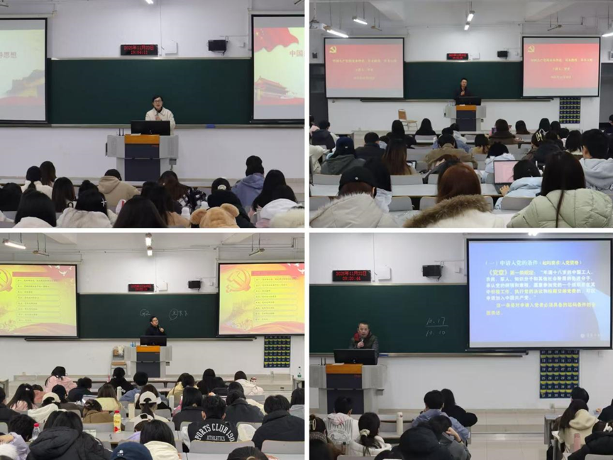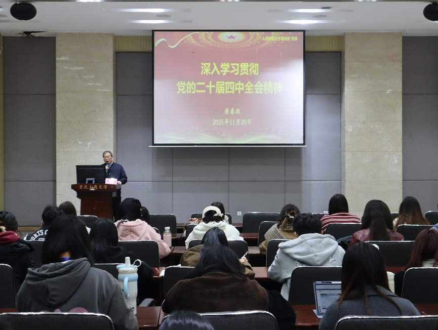 为深化入党积极分子对党的认识,夯实理论基础,端正入党动机,11月20日至23日,太阳集团tyc122cc、金融学院分党校在南岸校区田家炳书院409报告厅和博智楼07308教室成功举办2025年第二期入党积极分子培训班。太阳集团tyc122cc党委书记唐春秋、学校党政办公室秘书科科长罗勇、金融学院学生党支部书记杨宁、学团办主任兰丽娟、太阳集团tyc122cc学生党支部书记喻智成、文理为同学们授课,来自太阳集团tyc122cc和金融学院的130余名入党积极分子参加了此次培训。在为期三天的培训中,课程内容丰富、系统全面。开班仪式结束后,唐春秋以“深入学习贯彻党的二十届四中全会精神”为题进行专题授课,为整个培训奠定了坚实的理论基础。