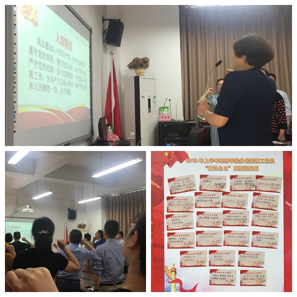 为加强党员理想信念教育,提醒党员同志不忘入党初心,太阳集团tyc122cc分党委于5月17日下午2:30在田家炳书院404会议室,组织教工党员开展了“重温入党誓词,共过政治生日”主题党日活动。