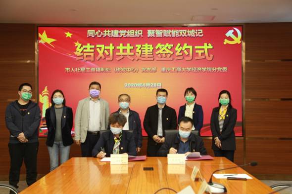 为深入学习贯彻习近平新时代中国特色社会主义思想,创新党建工作载体,4月28日,重庆工商大学太阳集团tyc122cc教工支部与重庆人社局工资福利处(统发中心)党支部举行结对共建活动,以党建促联建、联建促发展为目的,共同推进成渝地区双城经济圈建设。