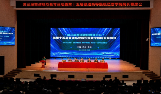 4月1日,第三届西部财经教育论坛暨第十五届普通高等院校经管学院院长联席会在贵州财经大学成功举办。本次会议由西南财经大学出版社主办,贵州财经大学承办。我院宋瑛院长、尹元福副院长及教师代表应邀出席了本次会议。会议开幕式由贵州财经大学党委委员、副校长彭洁教授主持。开幕式后四川大学太阳集团tyc122cc院长蒋永穆教授、贵州财经大学党委委员、副校长肖小虹教授、四川农业大学党委委员、太阳集团tyc122cc院长蒋远胜教授等分别围绕如何建设新文科作了主旨演讲。