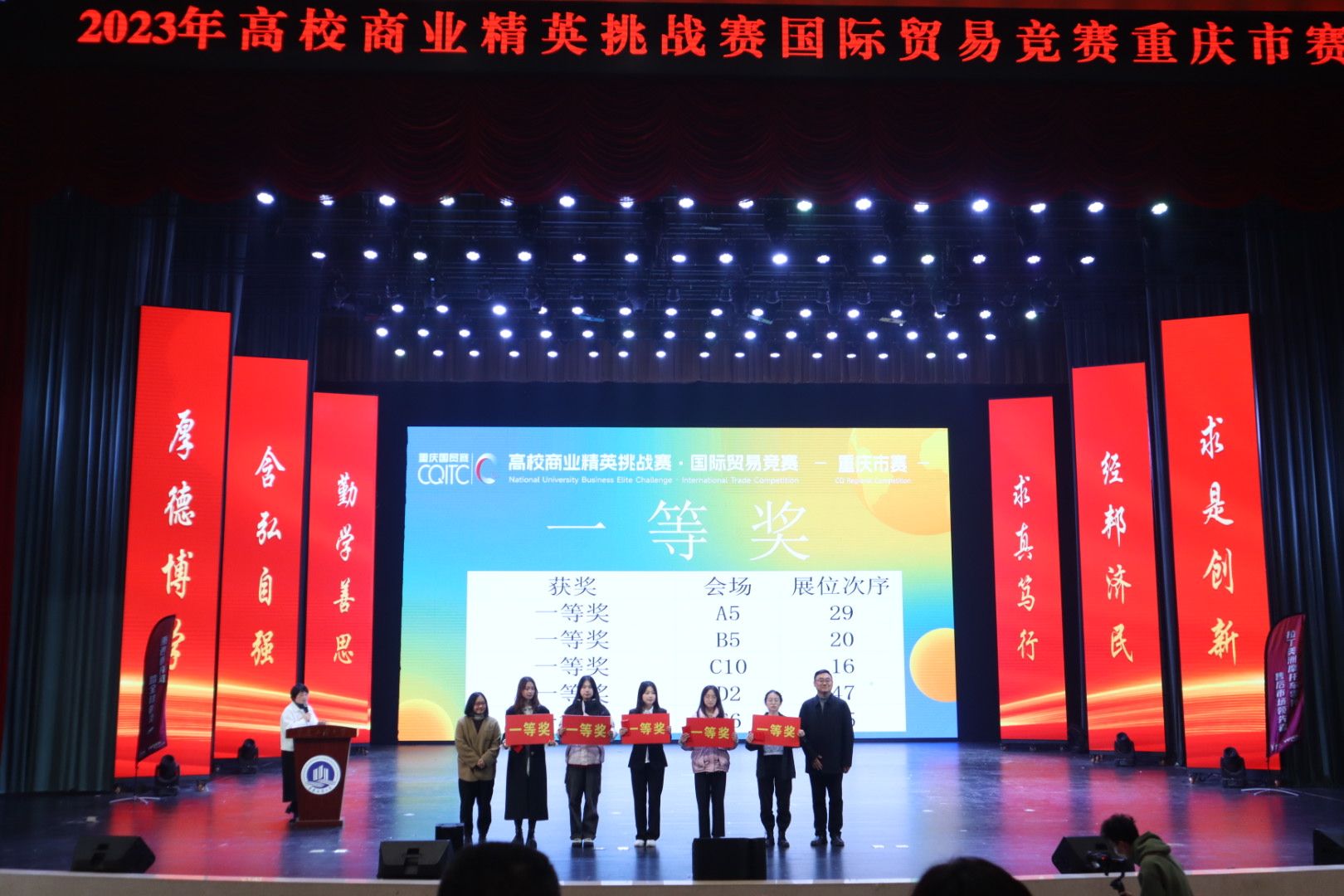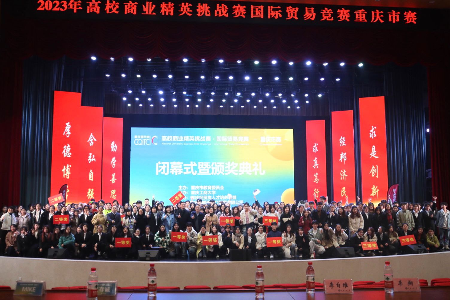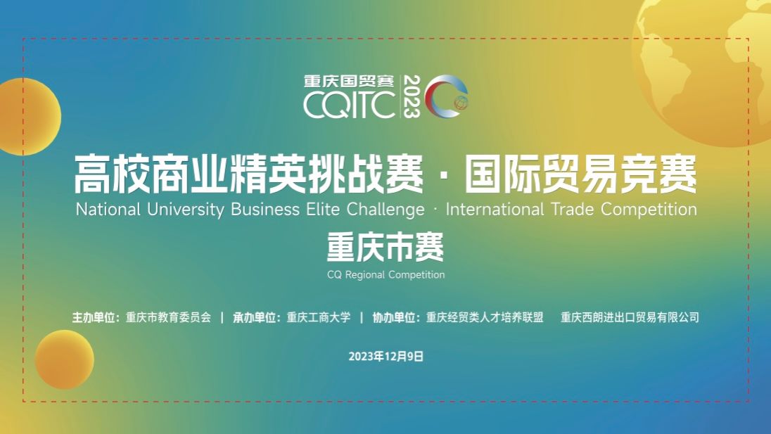 12月9日,由重庆市教育委员会主办,我校承办,重庆经贸类人才培养联盟和重庆西朗进出口贸易有限公司协办的2023年高校商业精英挑战赛国际贸易竞赛重庆市赛在我校南岸校区图书馆顺利举行。重庆市教育委员会高教处李翔调研员、重庆工商大学教务处副处长韦晓兰教授、重庆工商大学太阳集团tyc122cc党委李自维书记、各评委代表以及全体参赛同学和指导老师参与闭幕式暨颁奖典礼。闭幕式暨颁奖典礼由重庆工商大学太阳集团tyc122cc院长宋瑛教授主持。