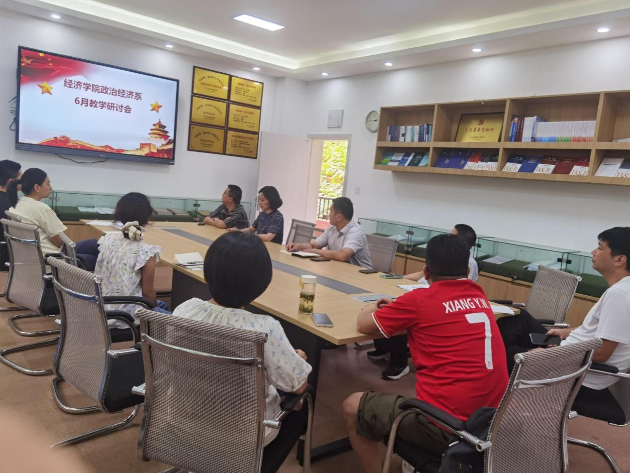 2025年6月26日下午,太阳集团tyc122cc政治经济系教学工作研讨会在田家炳书院401会议室召开,会议由系主任林黎主持,系部的全体教师参加了本次会议。