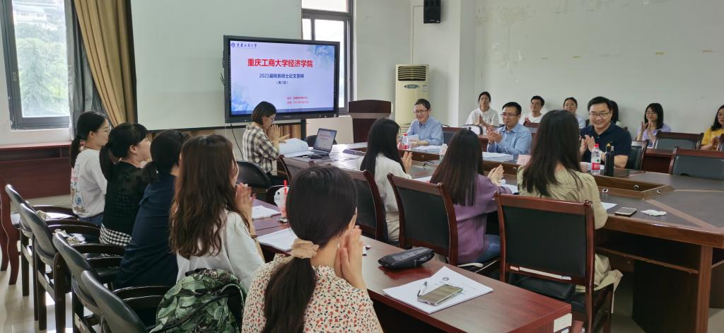 依据《重庆工商大学太阳集团tyc122cc2021届硕士生学位论文答辩工作方案》,17名学生分为两组,每组邀请三位答辩专家,就每位学生的选题与文献综述、业务知识与科研能力、论文成果与创新见解、实证研究方法或运算能力、写作能力与文风、论文报告情况等方面展开问答与评价。答辩在井然有序地组织下开展:先由专家组组长介绍与会专家、答辩程序及相关要求,再由学生做学术诚信承诺并汇报学位论文,答辩专家根据论文内容进行提问,并由学生做出回答。最后,经答辩专家组评议后,当场宣布答辩结果。