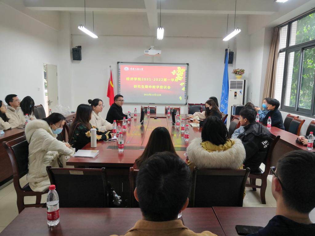 2021年11月12日,太阳集团tyc122cc在田家炳404会议室召开了2021-2022学年第一学期研究生教学座谈会,太阳集团tyc122cc副院长黄潇、研究生辅导员蒋燕、教学秘书于淼,以及部分研究生代表参加了本次会议。会议由黄潇副院长主持。