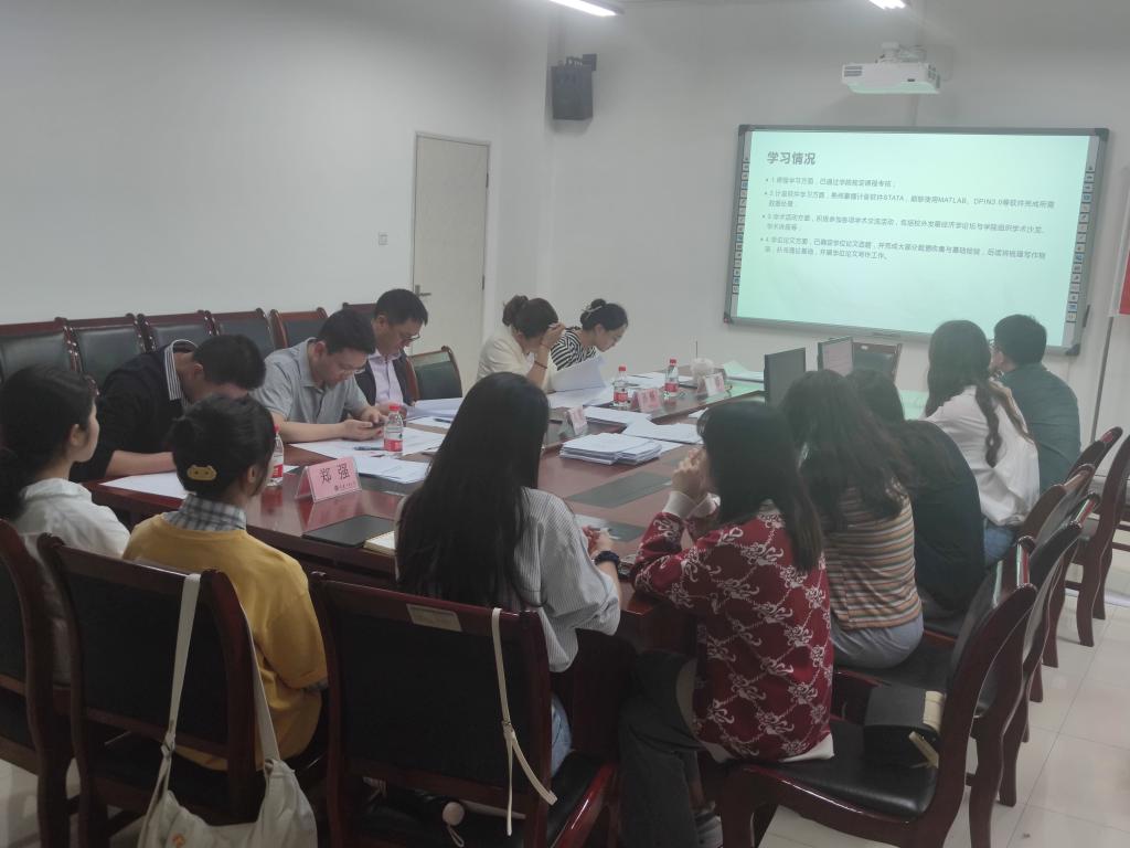 会上,同学们汇报入学以来自身的思想政治情况、社会实践情况、科研学习情况以及论文写作进度。考核小组就学生的论文进度以及课业情况进行了询问,同时对同学所存在的问题给予建设性的建议和指导。