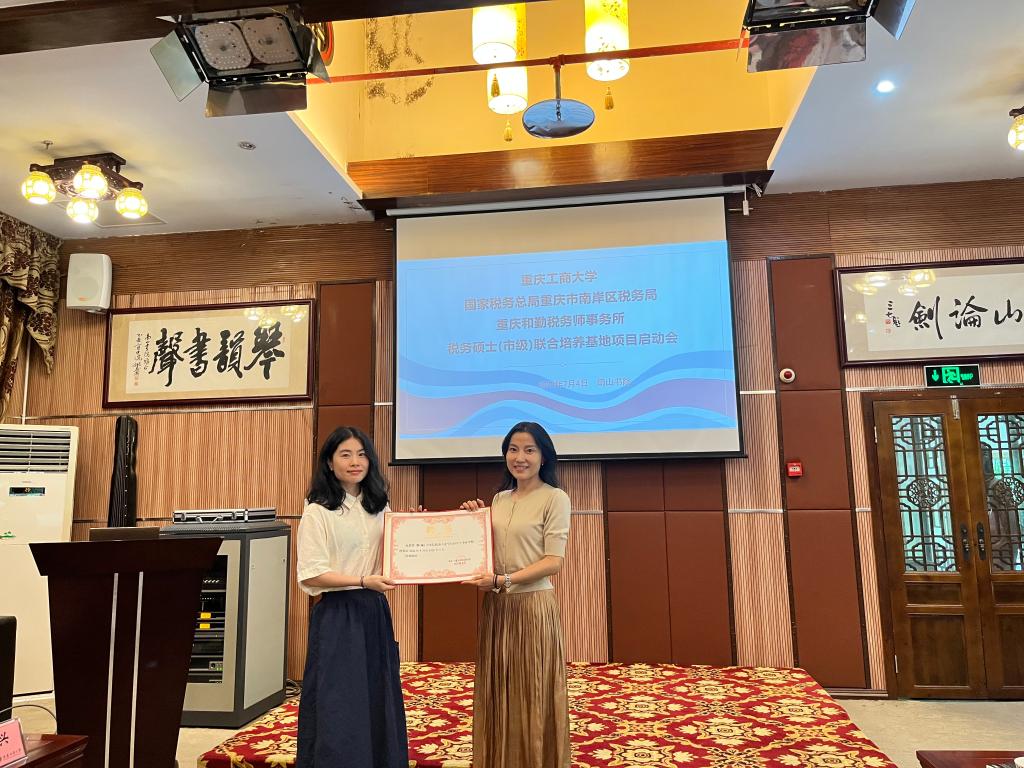 本次仪式由汤凤林副教授主持。黄潇副院长致辞,代表太阳集团tyc122cc对培养基地项目启动表示祝贺,对南岸区税务局和重庆和勤税务师事务所对学院发展建设提供的支持和帮助表示衷心感谢。他指出,税务专硕应致力于培养专业应用型人才,做好基地建设和工作具体落实,在学院支持的基础上发挥研究生的自主能动性,要求研究生要学以致用、注重实践。