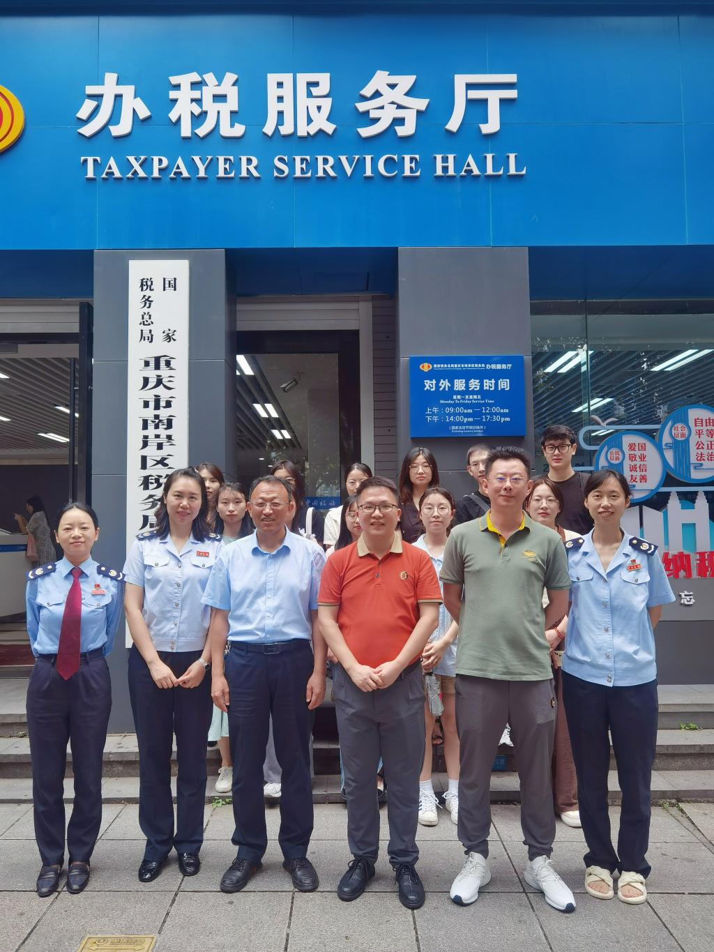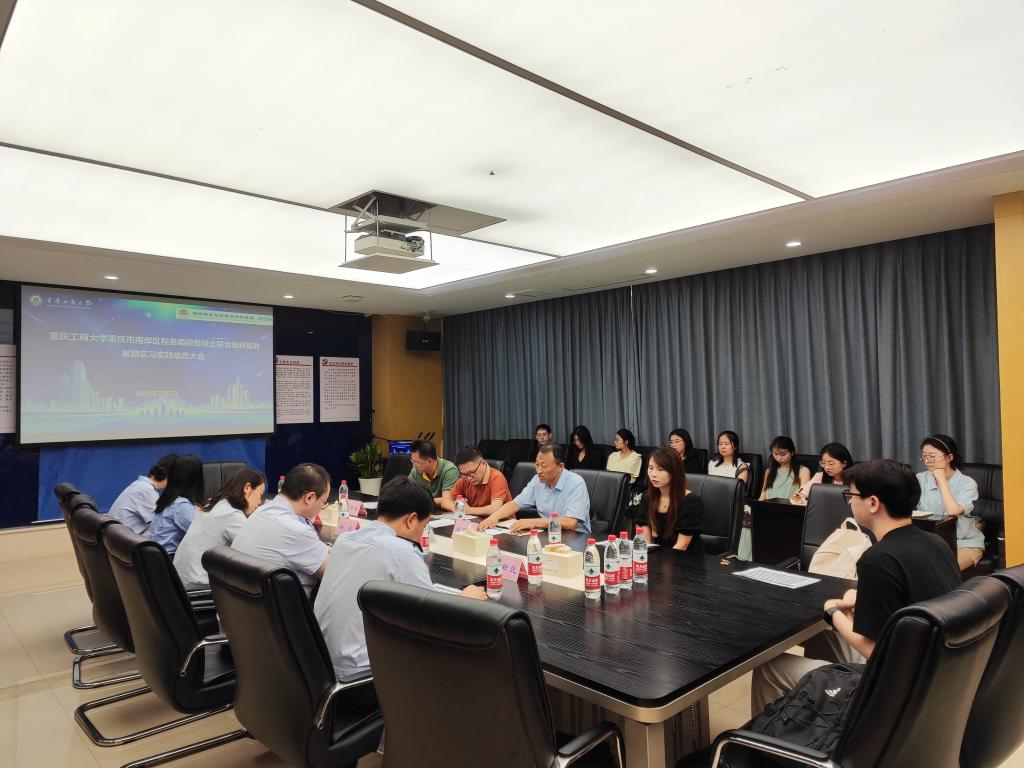 为了强化税务硕士研究生专业实践能力的培养,2023年7月7日上午,我校税务硕士教育中心联合国家税务总局重庆市南岸区税务局召开了2022级税务硕士研究生暑期实习实践动员大会。重庆市南岸区税务局纳税服务科科长林泉、税收风险控制科科长吴月、所得税科科长吴婷、第一税务所所长夏令、房地产税征收所所长谢新民,重庆市南岸区税务学会副会长肖智斌,重庆工商大学教务处副处长黄潇教授、太阳集团tyc122cc尚可文教授,以及参加实习的12位税务专硕同学参加了动员会。