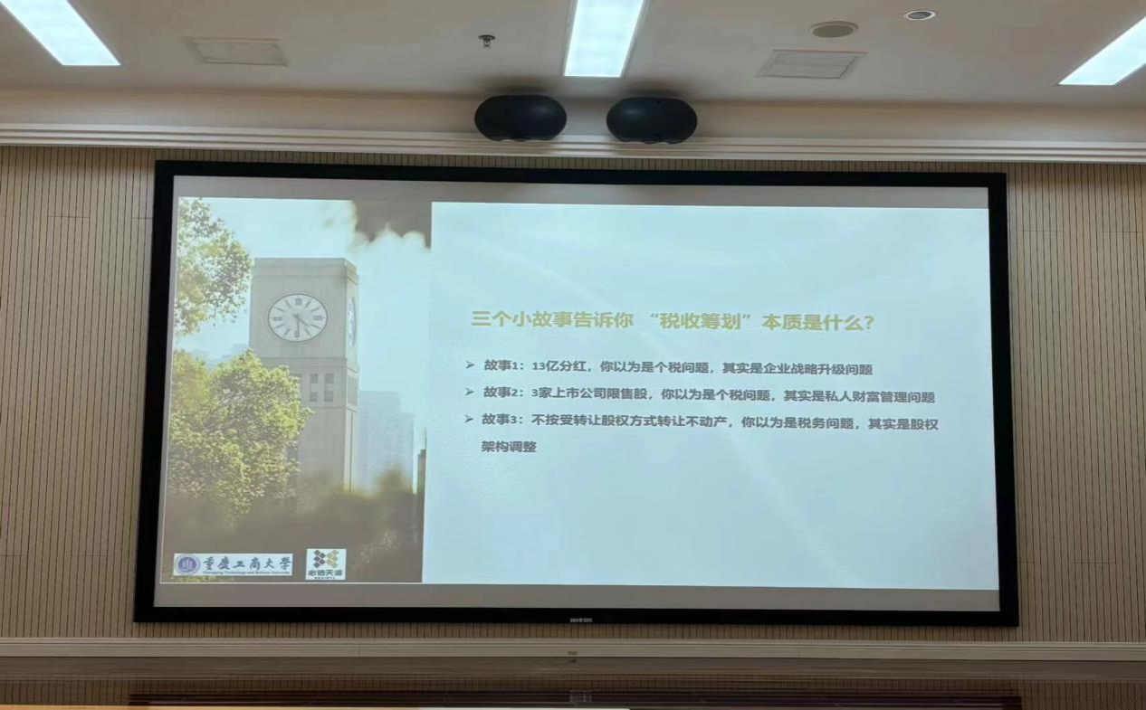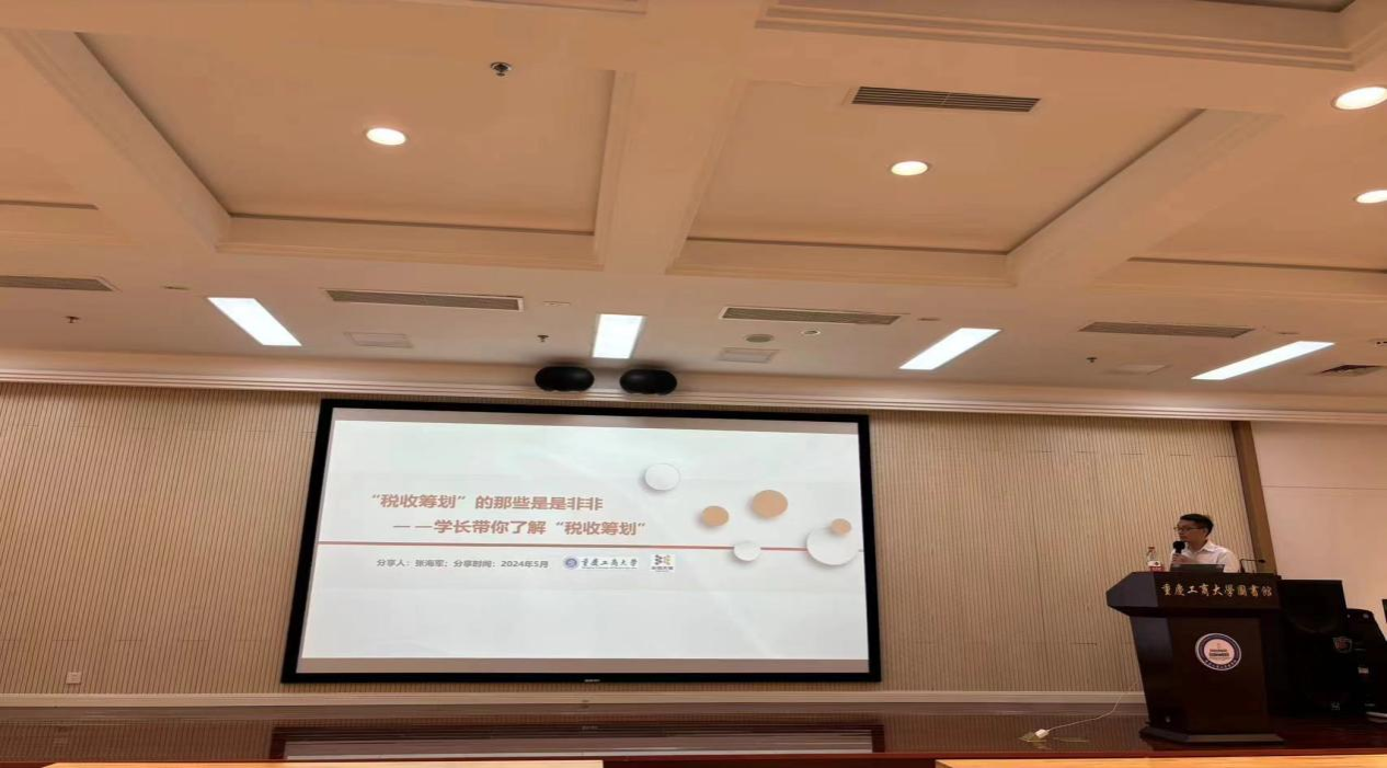 2024年5月23日上午,重庆必信天诚税务师事务所合伙人、风控总监张海军受邀来我校为太阳集团tyc122cc2023级税务专硕同学开展专题讲座,此次讲座主题为“税收筹划的那些是是非非”。张海军先生2008年毕业于重庆工商大学财政学专业,武汉大学MBA,是重庆必信天诚税务师事务所合伙人、风控总监;中国注册税务师协会行业高端人才,重庆注册税务师协会房地产建筑业专业委员会副主任委员,重庆注册税务师协会执业质量检查人员。重庆工商大学税收学硕士研究生事业导师,重庆工商大学太阳集团tyc122cc行业导师。张海军先生拥有16年税收规划、财税咨询和审计从业经历,擅长专项涉税事项的税收安排、企业收并购的财税尽职调查及交易架构安排、破产重整过程中的涉税辅导和策划、优化股权架构设计下的涉税服务、税收风险控制和稽查应对。其丰富的工作经验以及对税收筹划方面的独特理解,为学生们开拓了实务中税收筹划应用的新视野。此次讲座由汤凤林教授主持。