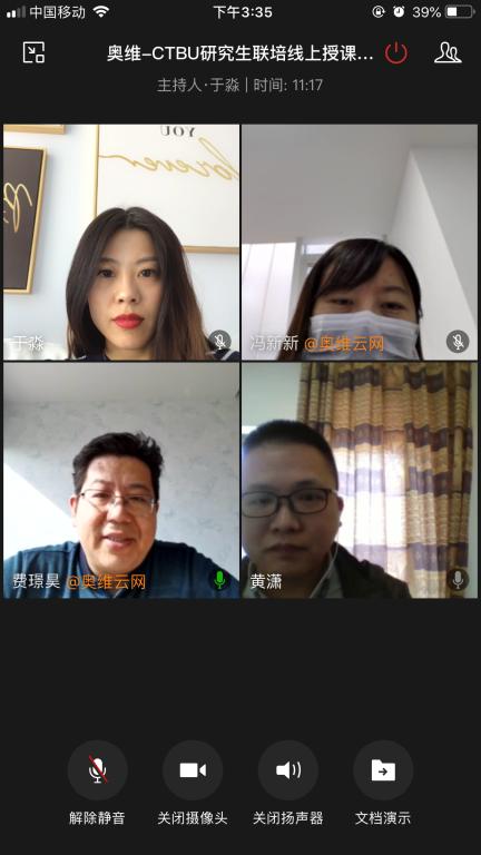 为深化校企协同合作,切实发挥研究生联合实践基地的作用,4月26日下午,学院同北京奥维云网大数据科技股份有限公司(以下简称奥维云网公司)共同召开了远程工作会。太阳集团tyc122cc副院长黄潇、研究生秘书于淼老师,奥维云网公司总架构师费璟昊、经理冯新新共同参加了此次会议。