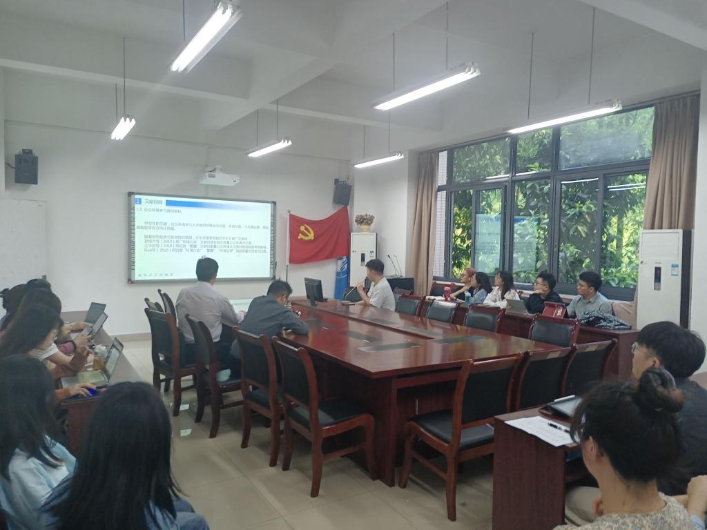 会上,2021级人口、资源与环境经济学专业的研究生汤杰霖与2020级国际贸易学专业的研究生杨露先后分享了两篇学术论文。其中,汤杰霖同学从文献回顾、理论分析、指标构建、实证研究以及文献评述方面介绍了一篇来自《中国人口·资源与环境》的论文,而杨露同学分享了一篇自己的工作论文并向老师请教修整意见。三位老师就两篇论文的优缺点提出专业点评,并对杨露同学的论文发表了增减的建议。参会的同学们就论文的实证研究方面做了学术探讨,并就一些数据选取的细节方面与老师进行了深入的交流。